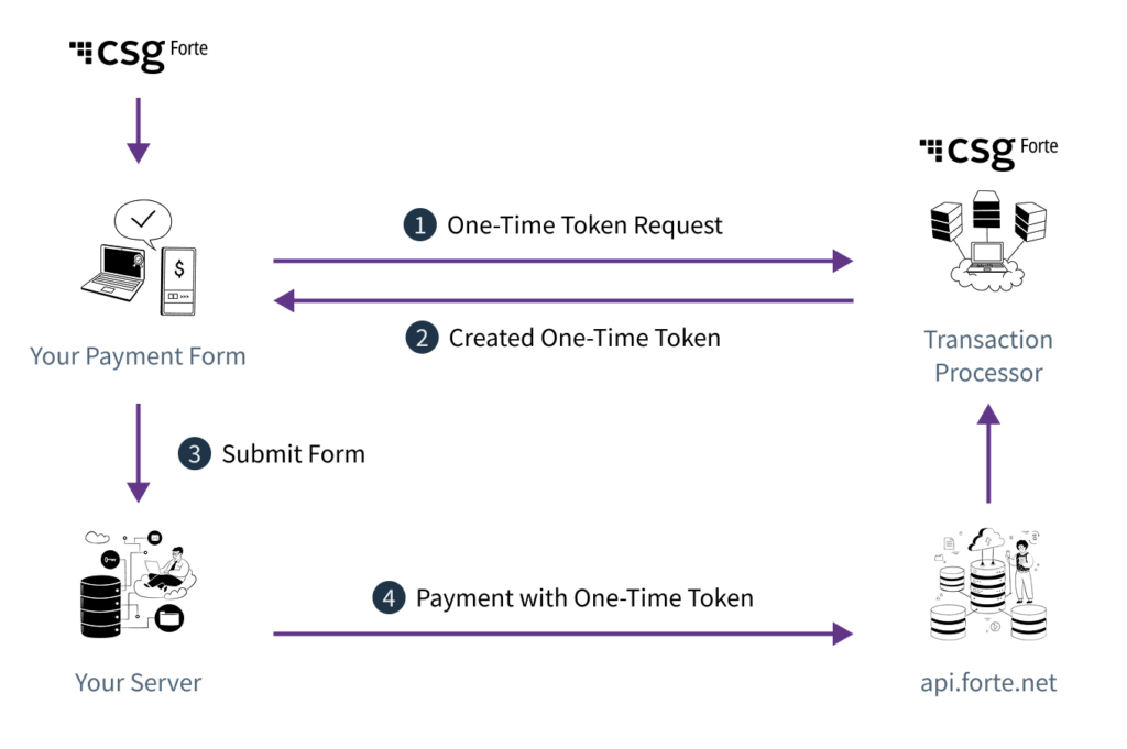 Securely capture payment information while maintaining complete control of your payment form and UX with Forte.js. Adding Forte.js to your HTTPS-hosted site reduces your PCI exposure by posting sensitive customer information directly to Forte's servers instead of your own. Forte.js also simplifies your payment processing by ensuring you don't have to worry about the complex security implications that arise when credit card or echeck data hits your server. Instead, after receiving a customer POST, Forte returns a single-use token to you, which you can use to create a transaction.